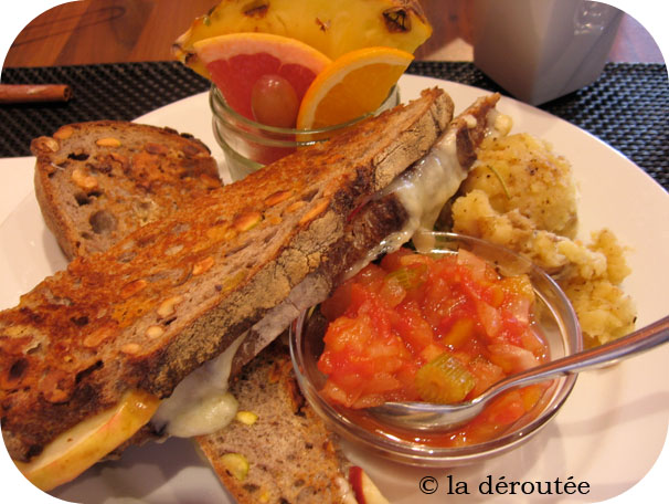 Grilled cheese dans un délicieux pain aux pistaches et aux noix; fromage Île-aux-grues 2 ans, pommes et ketchup maison…