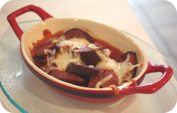 Notre cinquième choix a été le sucuk; des morceaux de saucisses au boeuf épicé (qui rappellent un peu du pepperoni), gratinés au four (ci-haut).