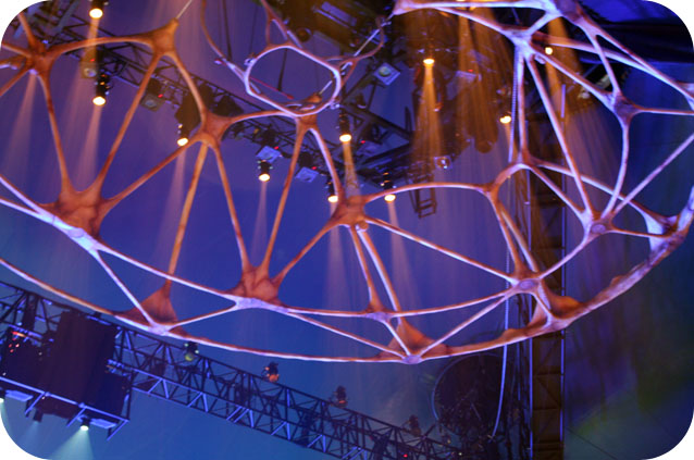 Pendant toute mon enfance et mon adolescence (où mes passe-temps se résumaient à « ballet classique et jazz, claquettes et tumbling »), il n’y a pas une année où je n’ai pas dansé sur la musique magnifique du Cirque du Soleil! Les rythmes caractéristiques du Cirque résonnent autant en moi que les paroles d’une berceuse chantée par ma mère; c’est tout dire! J’ai ressenti des frissons à mon entrée dans le Grand Chapiteau jaune et bleu hier, vous imaginez pourquoi…