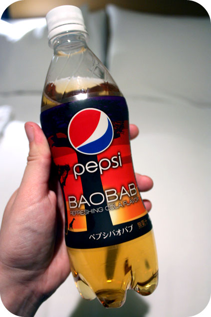 Voici donc une première découverte que nous avons fait dans un Family Mart du quartier d’Ikebukuro; il s’agit de la toute nouvelle boisson créée par Pepsi pour le marché japonais, le Pepsi Baobab!