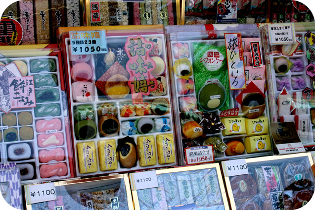 Il y a tellement de bouchées à goûter, sur Nakamise-Dori, que je regrettais d’avoir déjeuner juste avant d’y être! C’est tout de même là, par pure gourmandise, que nous avons manger pour la première fois du voyage des petits taiyaki bien chauds (petits gâteaux en forme de poisson).