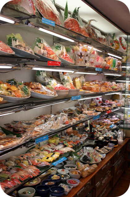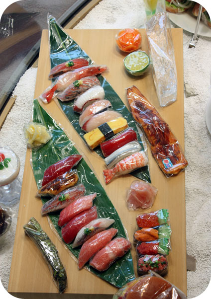 Il y a un restaurant Japonais sur Ste Catherine Ouest qui a une superbe vitrine composée de pleins pleins de répliques en plastique. À chaque fois que je passe devant, je ne peux pas m’empêcher de regarder et de scruter tous les détails. Comme toi, je n’aurais pas résisté ! 🙂