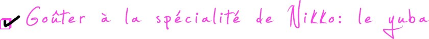 De passage dans la ville de Nikko, il faut absolument goûter à de la peau de tofu ou yuba, qui est la spécialité de la région (pour plus d’informations – en anglais – cliquez ici). Ce n’est pas le goût du yuba qui nous surprend (ça goûte évidemment le tofu), mais plutôt sa texture; la fine peau de tofu glisse sur la langue, un peu comme les algues que l’on nous sert dans les soupes japonaises!