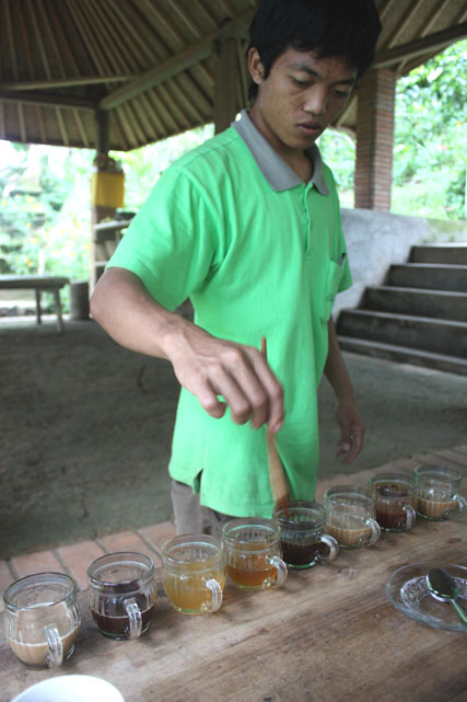 Pour accompagner le kopi luwak (et passer le temps, puisqu’il pleut fort), on nous offre gratuitement du café régulier, des boissons chaudes au cacao, à la vanille, du thé au gingembre, à la citronnelle, etc.