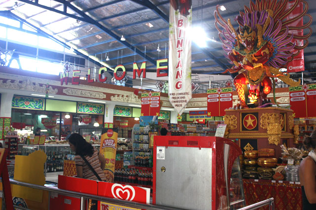 Le balinais moyen ne va pas souvent au supermarché; il achète habituellement les produits frais dont il a besoin, à meilleurs prix, au marché public. Les supermarchés sont, de fait, plus difficiles à trouver sur l’île, puisqu’ils s’adressent surtout à une clientèle plus aisée. Pour les touristes, comme nous, c’est une mine d’or pour explorer les produits disponibles sur le marché d’Asie du Sud-Est!
