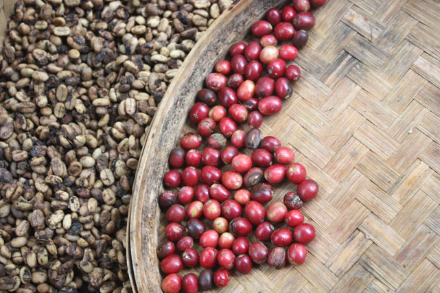Kopi luwak (non-nettoyé) et grains de café entiers
