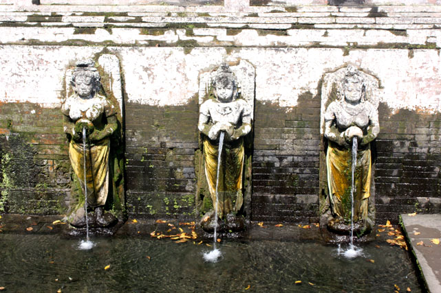 À Bedulu, à quelques kilomètres à l’est d’Ubud, on va faire un tour au site de la «grotte de l’éléphant», Goa Gadja. On y trouve une grotte, lieu de culte dans lequel on entre par la bouche d’un démon (1923), une sorte de «fontaine de Jouvence» (1954) qui est sensée préserver notre jeunesse, ainsi qu’un paisible petit boisé.