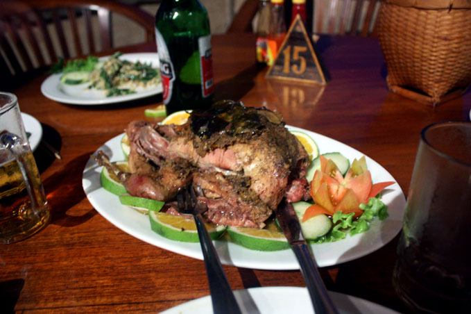 Si vous avez une seule réservation à faire dans un restaurant à Bali, disais-je, vous devez la faire une journée à l’avance, puisque le bebek betutu doit cuire lentement et absorber les épices dont on l’a frotté et farci, enveloppé dans des feuilles de palmier à bétel (ou dans des feuilles de bananier), durant une période de 8 à 10 heures! Nous avons, pour notre part, choisi de goûter à cette spécialité à Ubud, chez Bebek Bengil, un restaurant déjà reconnu pour sa version du crispy fried duck.